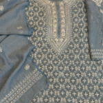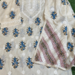 Pure mul cotton Chikankari semi-stitched kurta and dupatta set with appliqué work on four sides of the dupatta